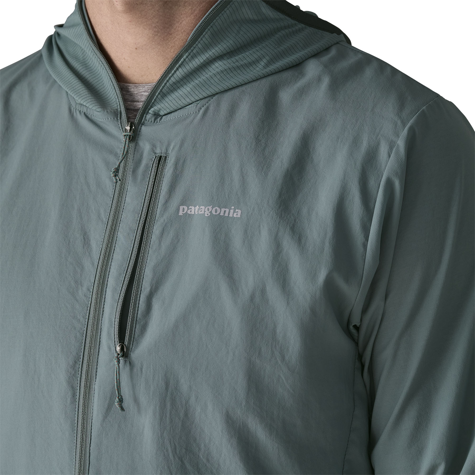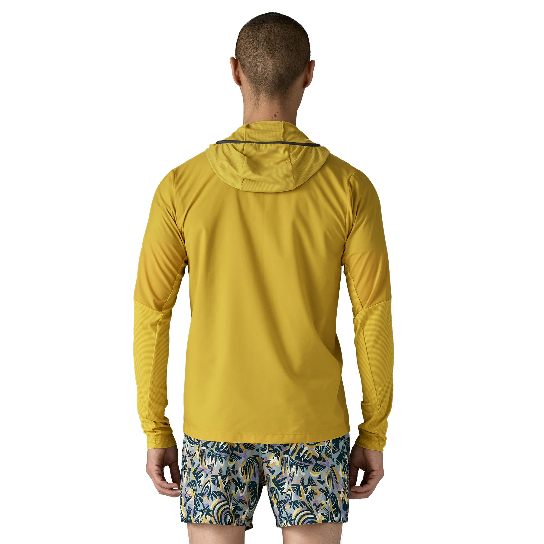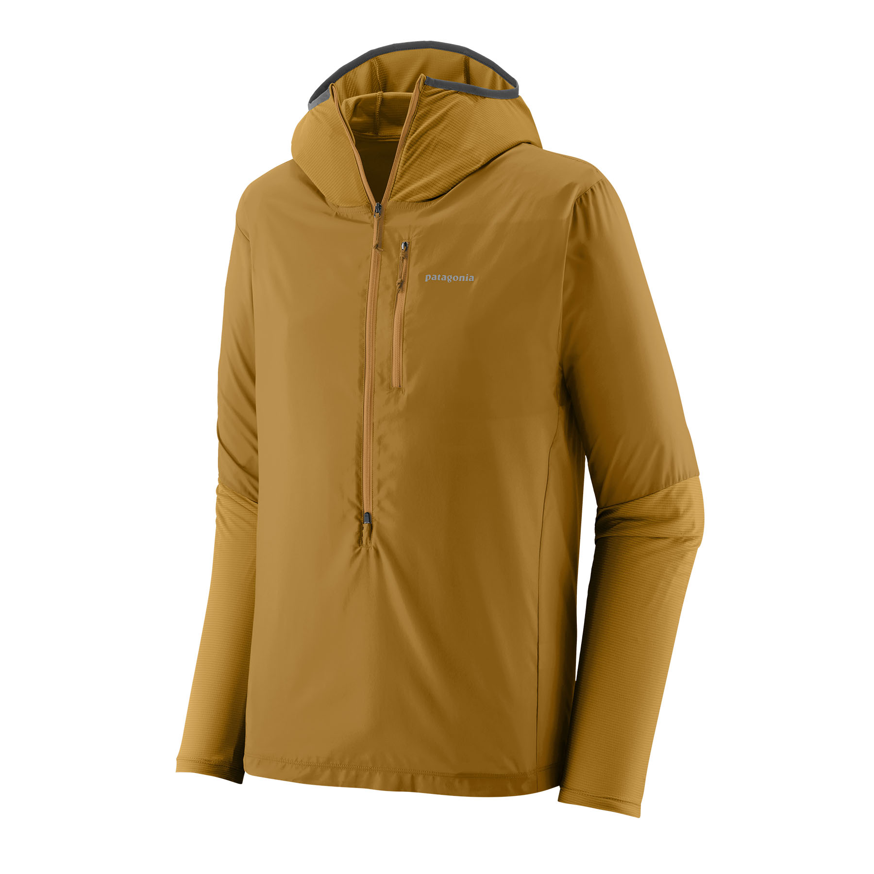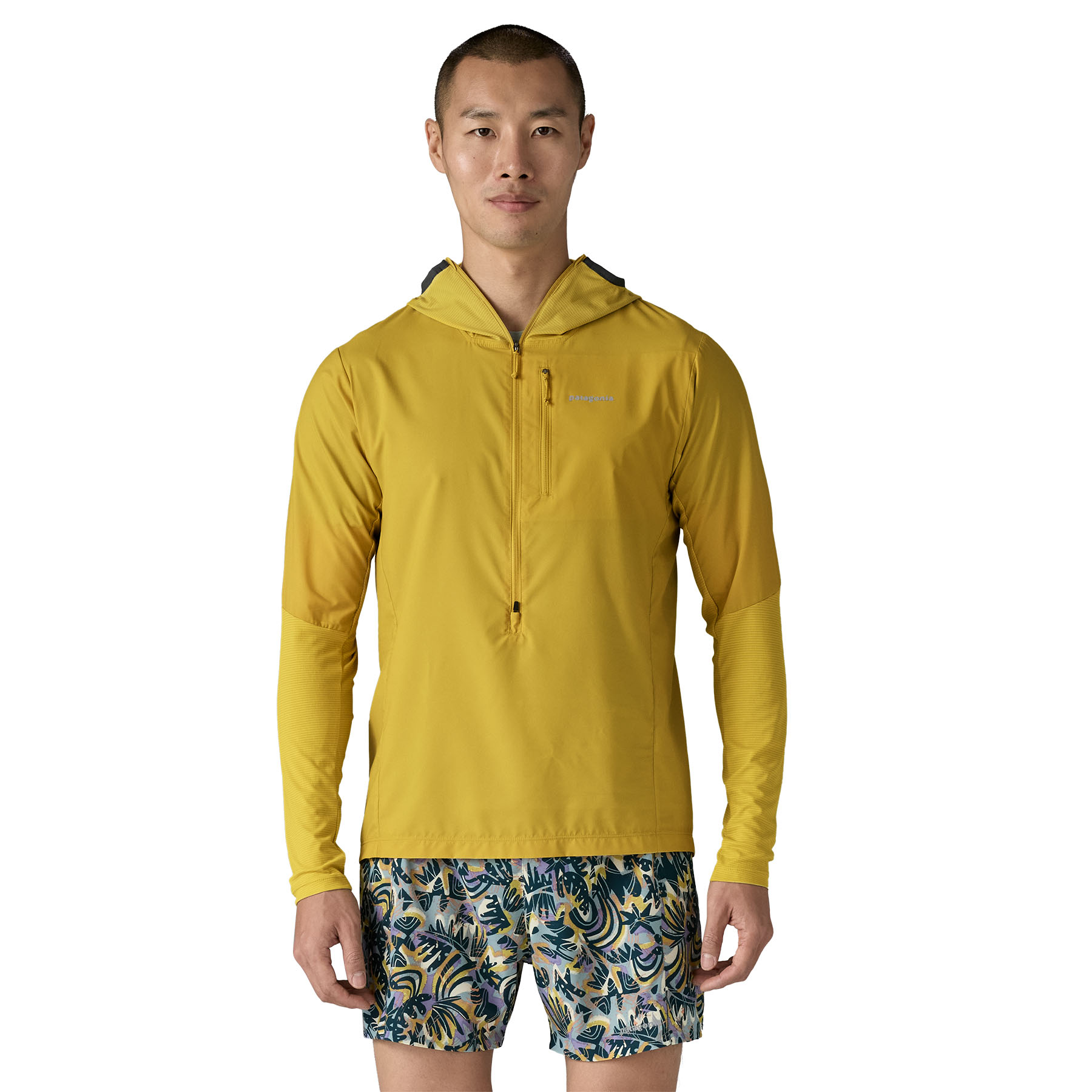 This water-repellent wind shirt is a no-brainer for runs in uncertain mountain weather. It's fast drying, ultralightweight and breathable, with a stretch-knit hood and lower sleeves, and a durable water repellent (DWR) finish made without intentionally added PFAS. And, it packs into its own pocket for easy stowability.