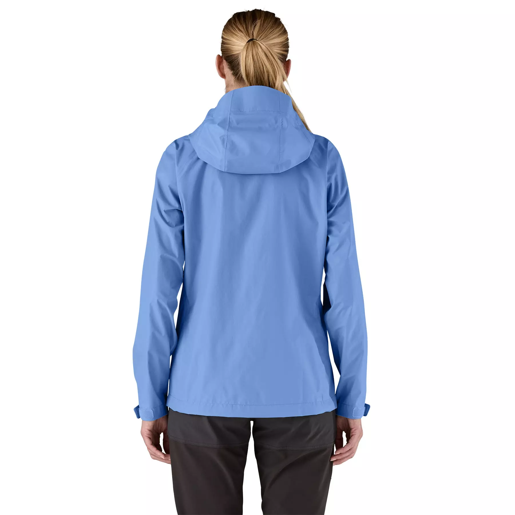 Self-fabric hook-and-loop cuff closures and an adjustable drawcord hem seal out precipitation