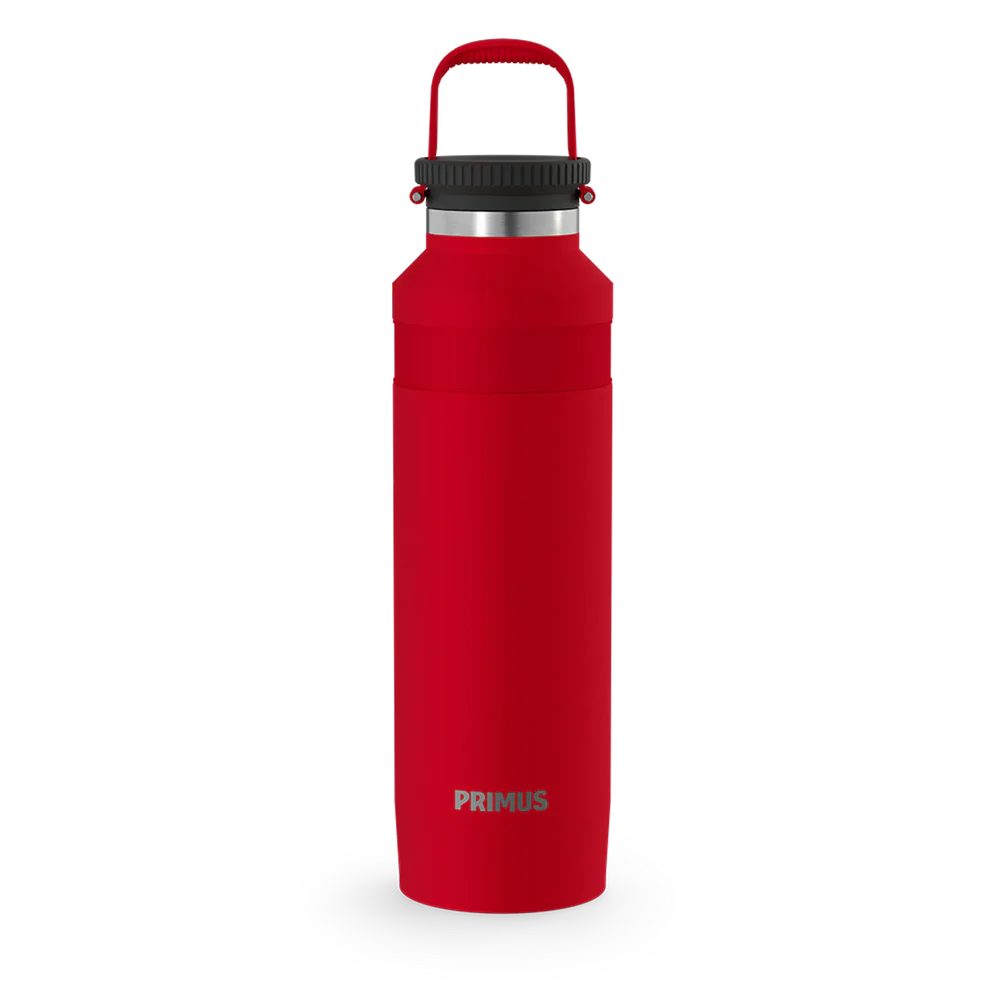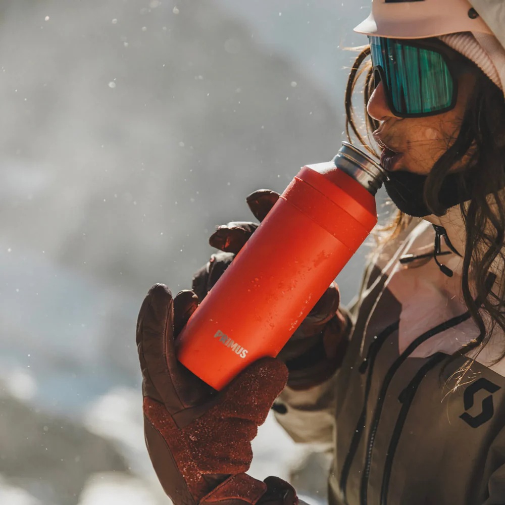 Made from food-grade stainless steel with a narrow 44 mm opening, this vacuum-insulated bottle keeps your drink at the right temperature and is easy to sip from. The silicone sleeve improves grip, and the cylindrical shape lets you attach repair tape if needed. Featuring Primus ThinCore double-wall vacuum insulation, the bottle combines improved insulation performance with reduced weight, without compromising durability.