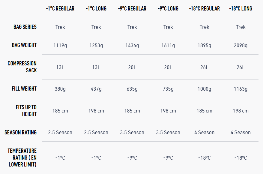 - Shaped hood and oversized zip draft tubes (Trek -12°C also has a draft collar, fits snugly around shoulders) to seal in warmth and keep cold out