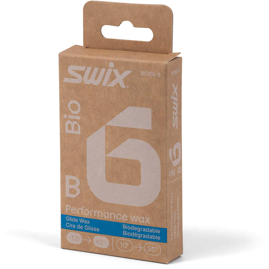 Swix BIO is a versatile glide wax. Bio-B6 covers the typical winter temperatures from -12 °C to +2 °C. It is made from 100% biodegradable raw materials and comes in a 100% recycled plastic box.
