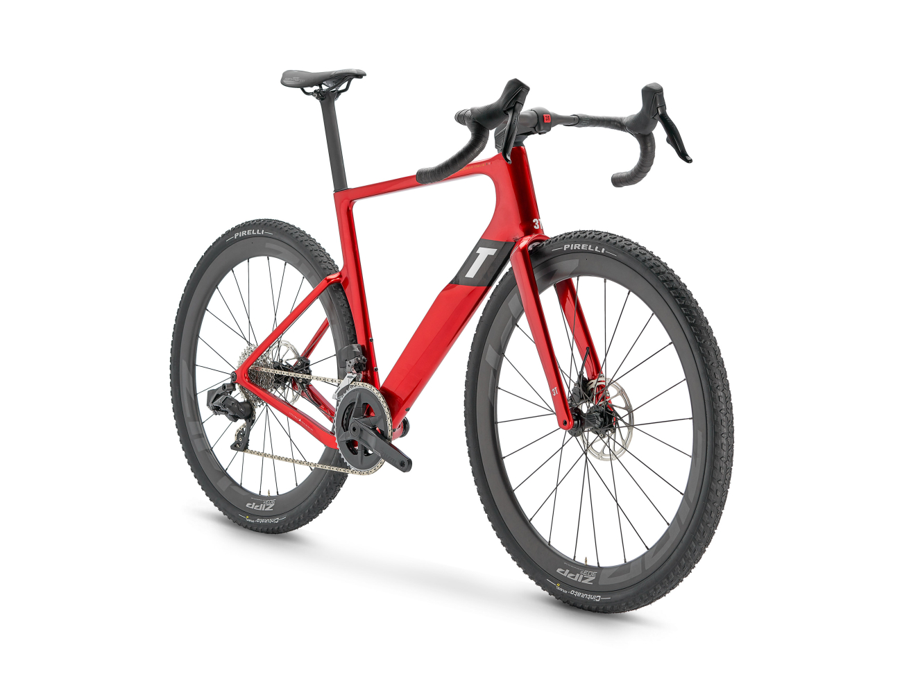Cadre : RaceMax Italia Integrale 418 Matériau du cadre : Filage de filament interne de 3T utilisant une combinaison de fibres à haute résistance/haute rigidité, combiné à une injection de résine RTM. Fabriqué en Italie Fourche : 3T Fango RaceMax Integrale avec couronne compacte Jeu de direction : 3T MinMax Integrale IS42/31.8 + IS47/33 Axe traversant : 100x12 avant - 142x12 arrière Guidon : 51 : 40 cm - 54&56 : 42 cm - 58 : 44 cm Potence : More Integrale (51 : 80 mm, 54 : 90 mm, 56 : 100 mm, 58 : 110 mm) Dérailleur arrière : Sram Rival AXS max 36T Leviers de changement de vitesse/frein : Sram Rival AXS Freins : Disque hydraulique Sram Rival AXS avec rotor Sram 160 mm Pédalier : Sram Rival AXS, plateaux 46-33T, facteur Q étroit (51 : 170 mm - 54&56 : 172,5 mm - 58 : 175 mm) Cassette : Sram Rival AXS 12 vitesses 10-36T Jeu de roues : Zipp 303S ou 3T Discus 45/32 LTD selon disponibilité Tige de selle : 3T RaceMax pour collier Ritchey