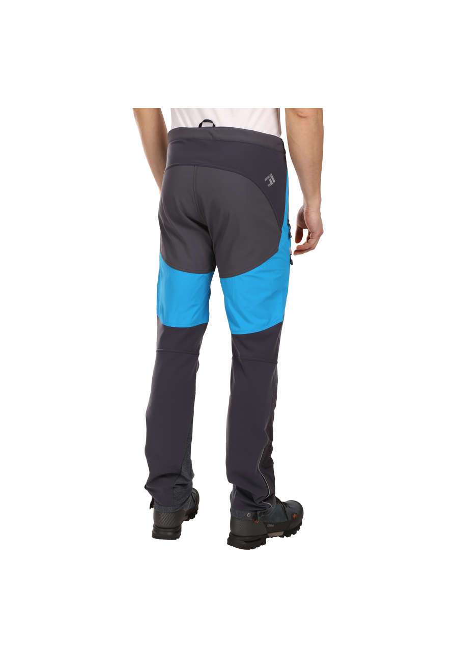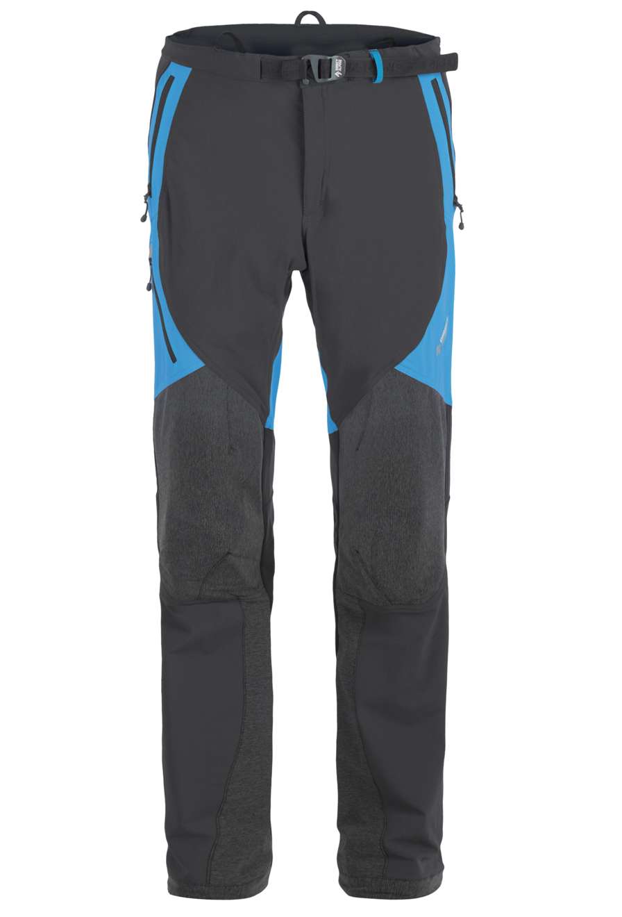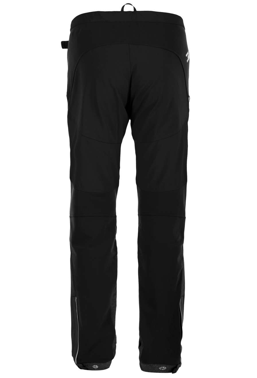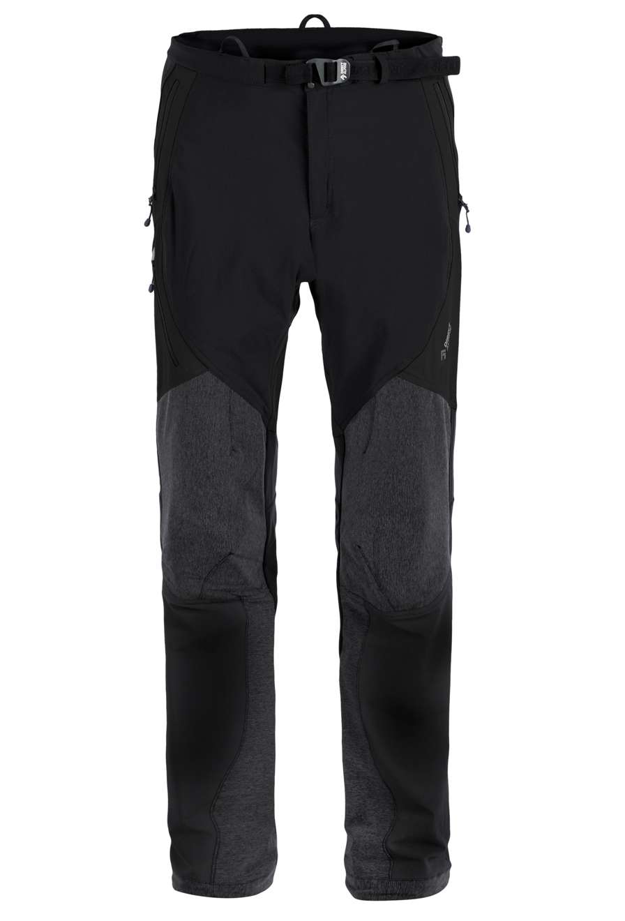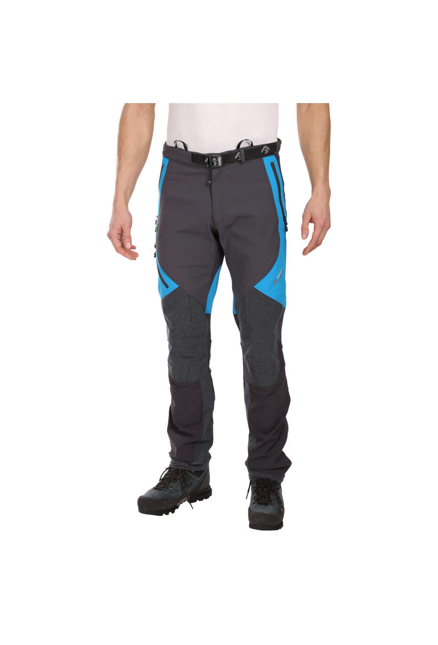 Ceinture confortable, ceinture ajustable avec fermoir. Braguette avec fermoir à deux sens. Deux poches avant et une poche latérale, facilement accessibles même lorsque vous portez un harnais de siège. Genoux et bas de jambes renforcés avec un tissu très résistant à l'abrasion. Jambes avec finitions ajustables, fermoir latéral dissimulé et inserts élastiqués permettant de les enfiler confortablement par-dessus des chaussures de ski. Le bas des jambes peut être attaché à vos chaussures avec un crochet sur un cordon élastique. Accessoires et bandes réfléchissants pour la sécurité. Mélange de base de tissu Cordura avec polyester brossé à l'intérieur (pour la chaleur et l'évacuation de l'humidité). Matériaux supplémentaires : Cordura fin et tricot brossé élastiqué. Système hybride – pièces individuelles de matériau positionnées en fonction des exigences physiologiques supposées. Activités : alpinisme, escalade sur glace, VHT