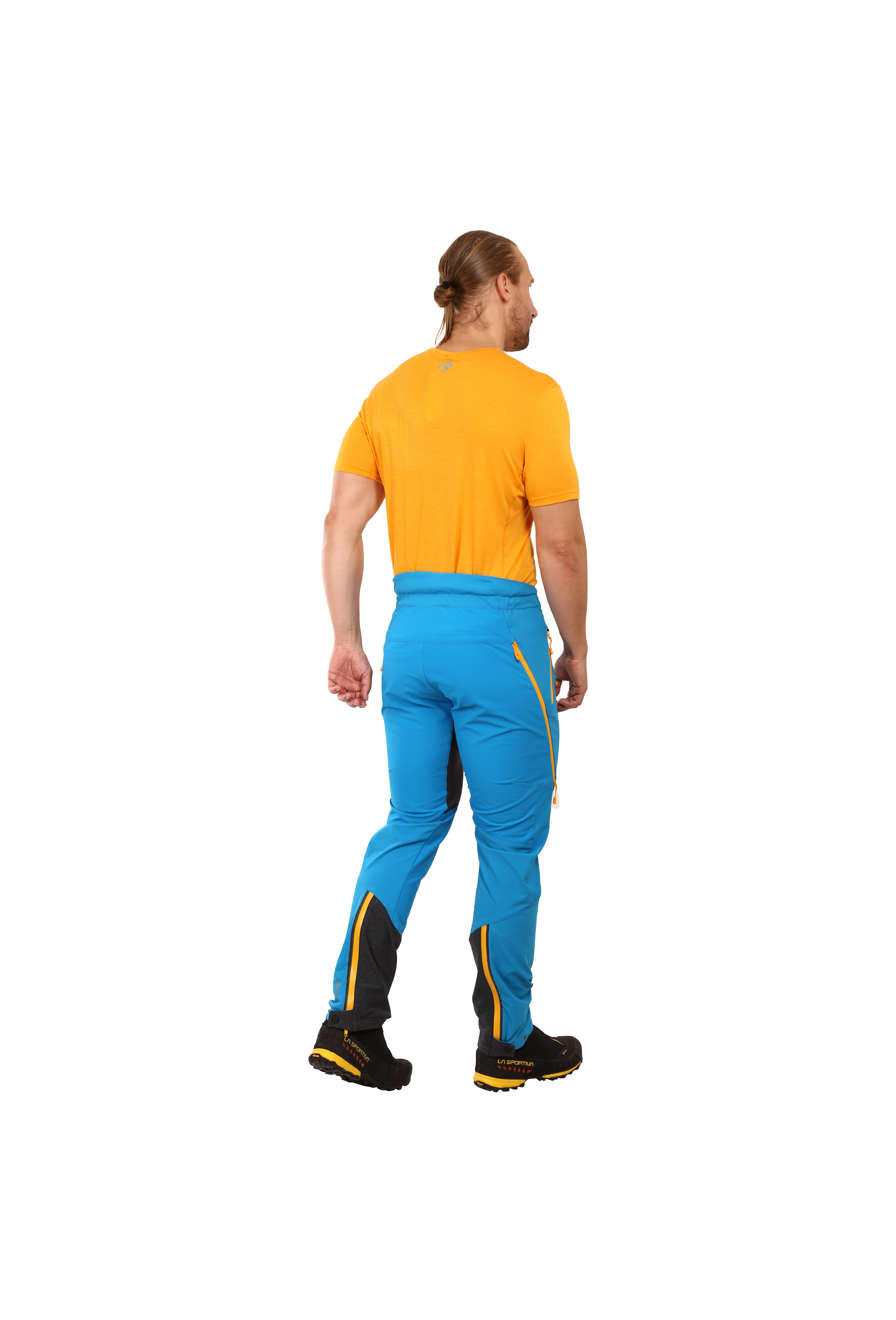 Pantalons d'alpinisme hautement techniques, spécialement développés pour le ski de montagne et les excursions en arrière-pays, l'escalade sur glace et en mixte, ainsi que pour le ski de fond récréatif. Tous les détails techniques, le choix des matériaux et la coupe sont spécifiquement conçus pour répondre aux exigences de votre équipement de sports d'hiver. Le matériau principal utilisé dans les zones exposées est résistant à l'abrasion et flexible, avec une couche interne en Thermolite®. De plus, il est complété par des panneaux de matériau hautement flexible et respirant pour une ventilation efficace de la chaleur excédentaire. La face intérieure lisse permet également de le porter directement sur la peau. Les caractéristiques techniques maximisent votre confort et facilitent les activités liées à votre sport favori : une ouverture à l'arrière des jambes du pantalon pour passer facilement du mode marche/ski avec vos chaussures de ski d'alpinisme, équipée de Velcro pour empêcher la neige d'entrer dans le pantalon, et une boucle pour faciliter la manipulation avec des gants. Les pantalons sont équipés de fermoirs à l'extrémité, avec deux curseurs opposés, permettant d'ouvrir le pantalon lors de la mise en place ou du retrait des chaussures, et un accès facile aux boucles de chaussure. La coupe anatomique parfaite est basée sur la forme naturelle du corps humain et s'adapte à vos mouvements — s'ajustant parfaitement et offrant un confort maximal.