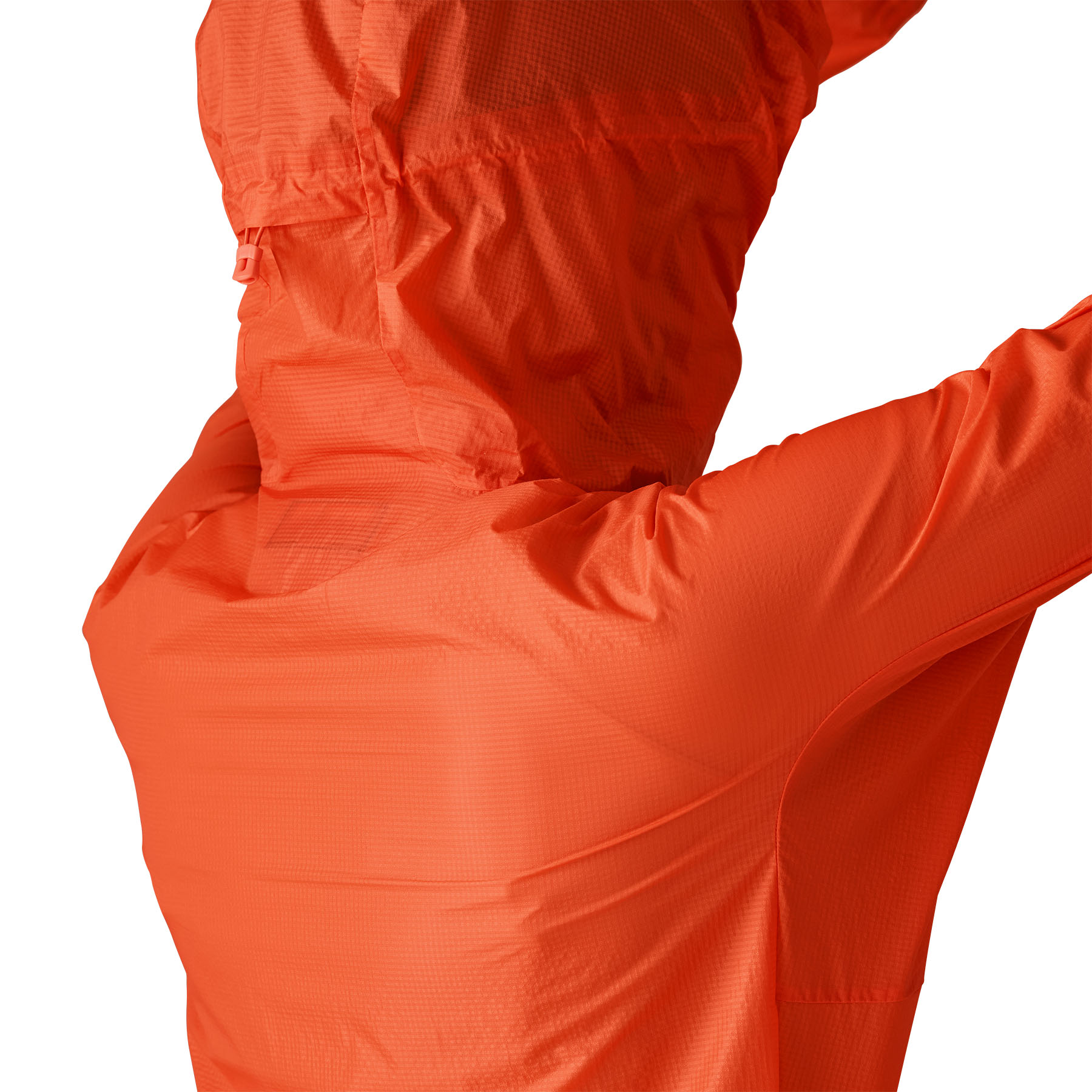 The helmet-compatible, easy-off hood adjusts two ways and can be pulled on or off with one hand, even when fully zipped. The slim, climb-specific fit provides extra room in the shoulders for overhead mobility, while deep center-front zip vents make it easy to take the jacket on or off or release heat during intense climbs.