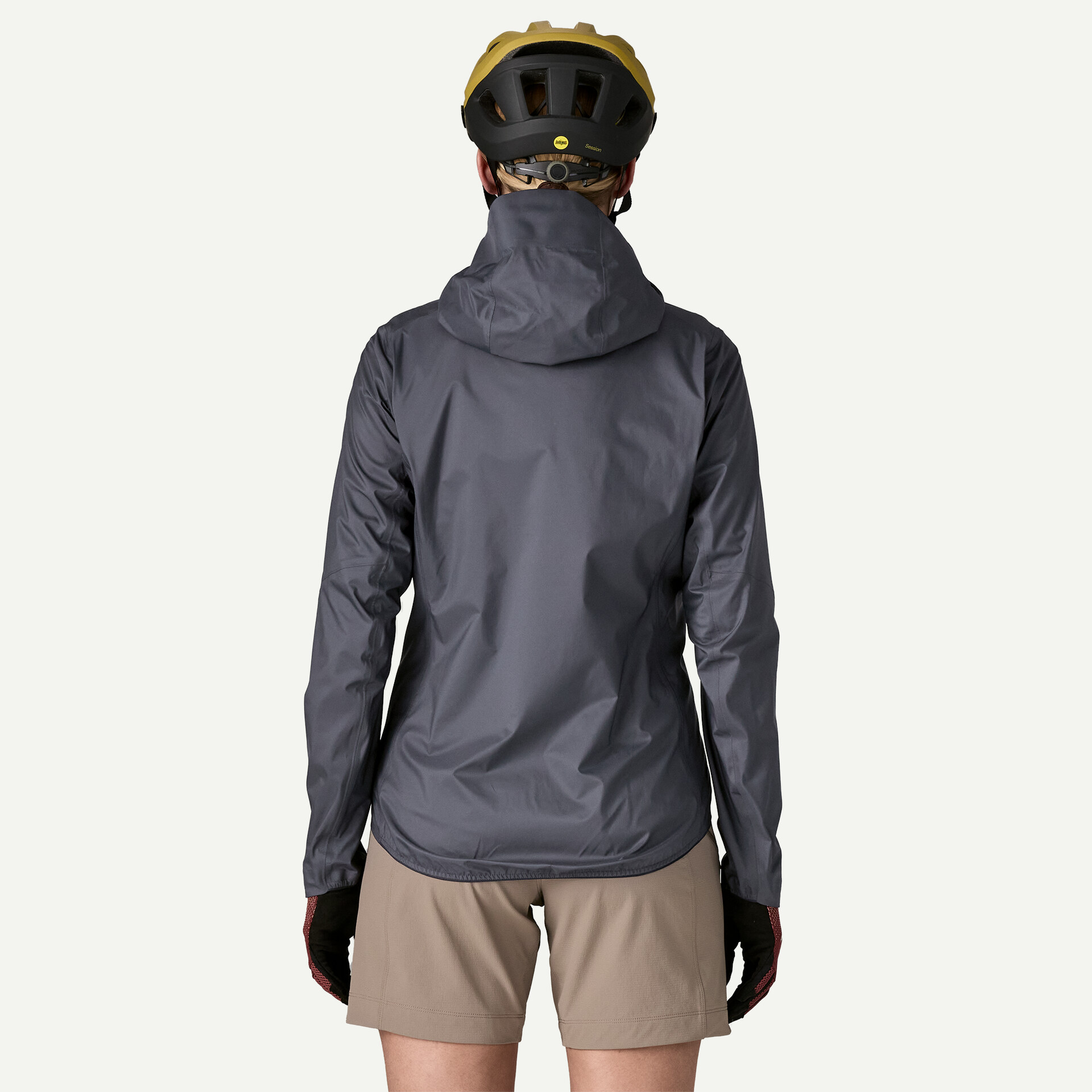 Jacket packs into secure hand pockets, or can be rolled into the cinch hood and tied around the waist with jacket arms