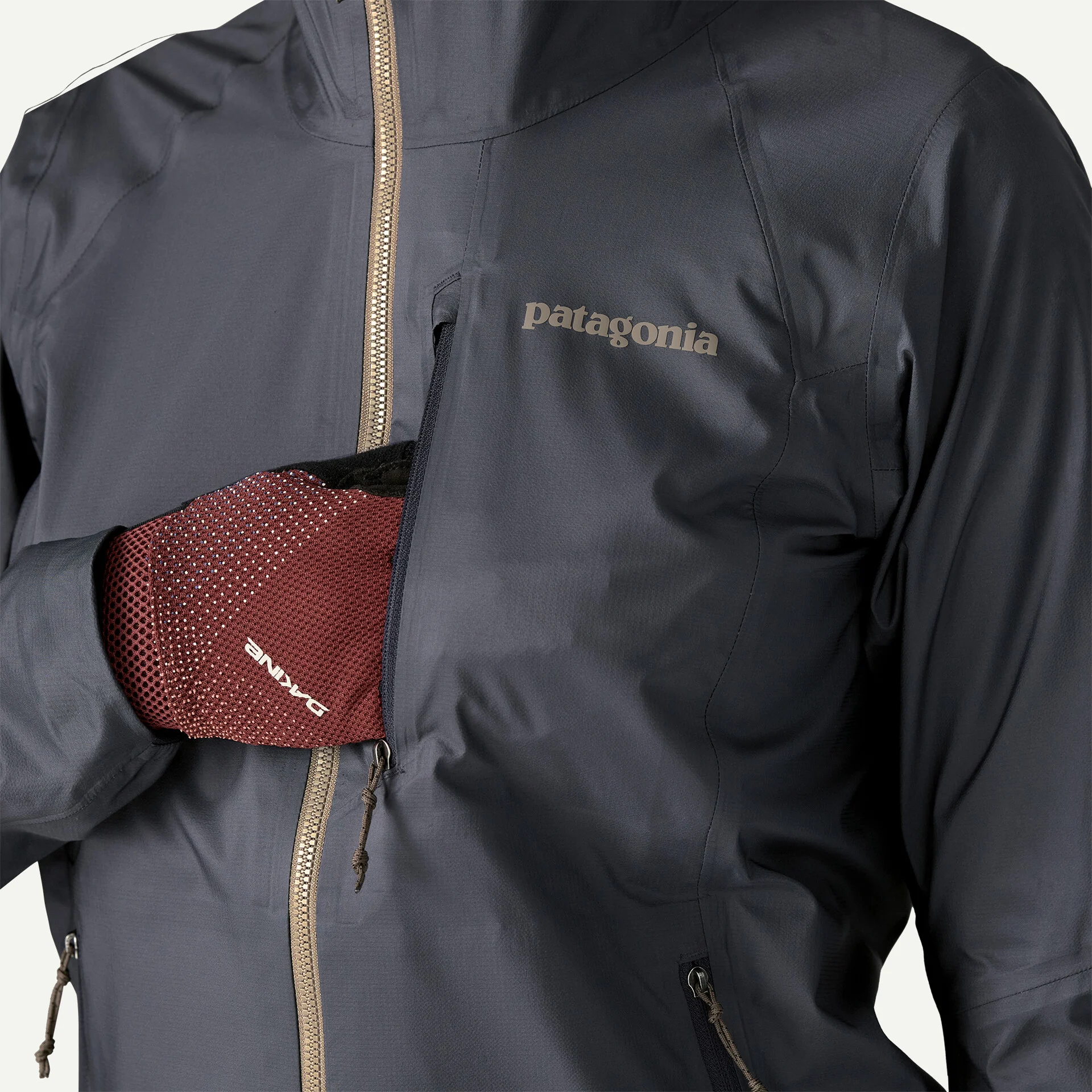 Two secure hand pockets and exterior chest pocket with minimalist zippers hold valuables without adding bulk