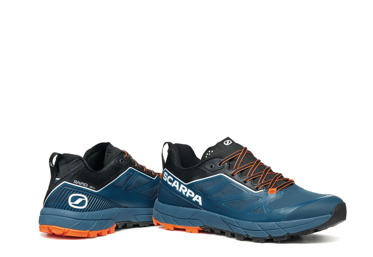 RAPID GTX is the approach shoe designed for moving fast on mountain terrain, even if it rains. Ideal for technical trails, when approaching the climbing wall, easy to attach to the harness and performing well on steep and fast descents.
